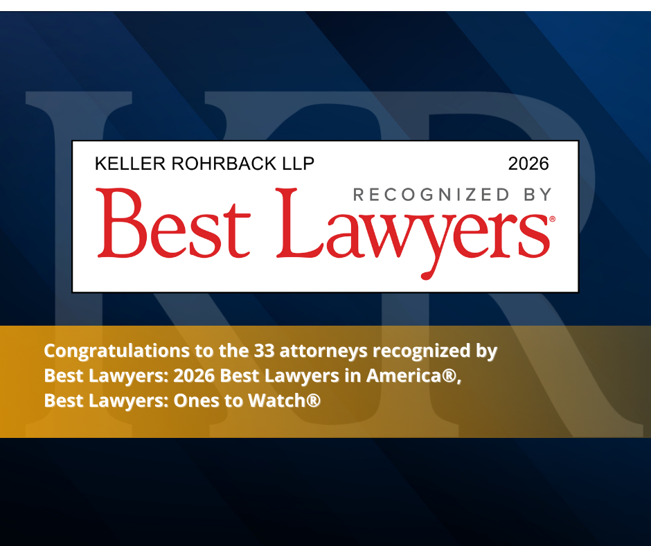 Keller Rohrback is proud to announce that 33 of our attorneys have been recognized by their peers for inclusion in the 2026 editions of The Best Lawyers in America® or Best Lawyers: Ones to Watch® in America which, acknowledges exceptional legal talent among lawyers earlier in their careers. We invite you to join us in congratulating the following partners and associates: