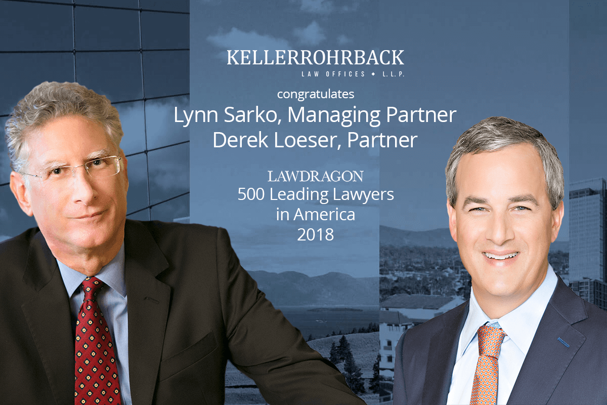 Legal magazine Lawdragon has published its annual listing of the 500 “Leading Lawyers in America,” which includes Keller Rohrback managing partner Lynn Lincoln Sarko and senior partner Derek W. Loeser. Selected from a combination of editorial research by Lawdragon staff, law firm submissions, and other online nominations, the Lawdragon 500 Leading Lawyers list is a mark of high distinction in the legal profession.